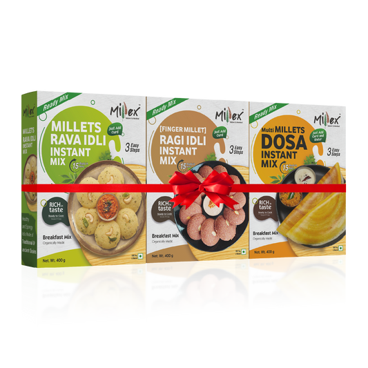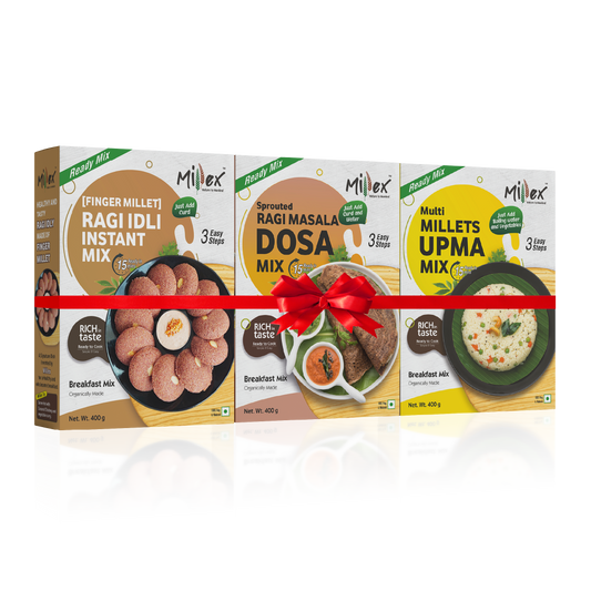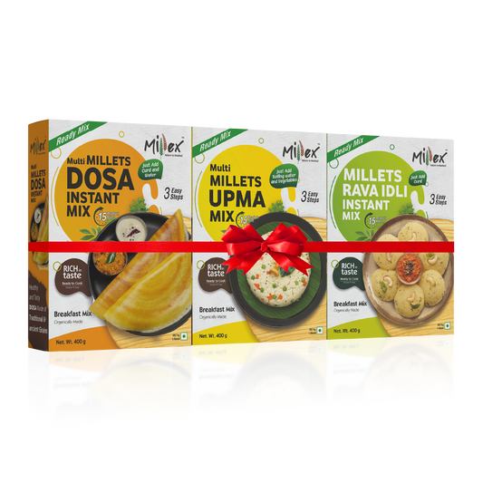 BREAKFAST COMBO - Multi Millets Dosa Instant Mix | Multi Millet Upma Mix | Millet Rava Idli Instant Mix (Total 1200g - each 400g)